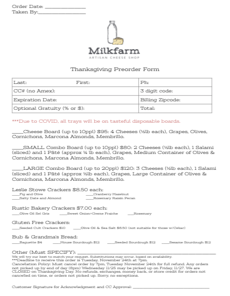 pdf_Thanksgiving_2020 Please Click above link to access the Thanksgiving Preorder Form. These can be submitted in person or emailed to MilkfarmLA@gmail.com. If emailing your form, please make sure you receive an email confirmation of receipt. Thank you! These are due by Tuesday, November 24th for pick up on Wednesday November 25th. We are CLOSED ON […]