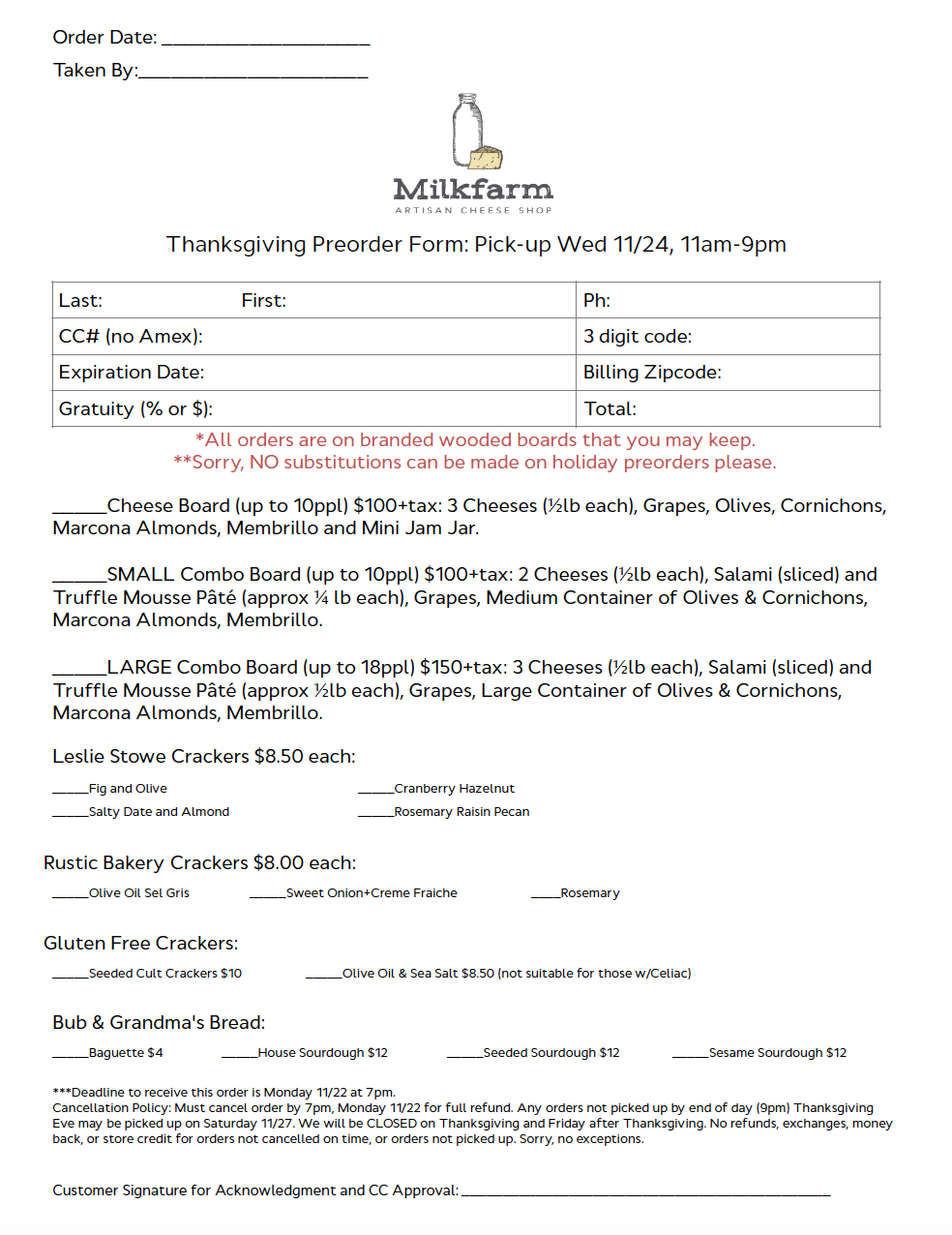 Deadline to preorder ANYTHING for Thanksgiving is today. We will be turning off the phone lines on Tuesday and Wednesday so that we may service in-person guests to the best of our abilities. Thank you for understanding and see you soon!
